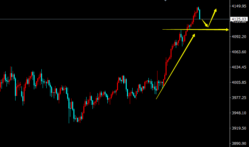 【周二操作】:黄金日内回撤于4105-00附近做多,目标4130-50附近,损4090.