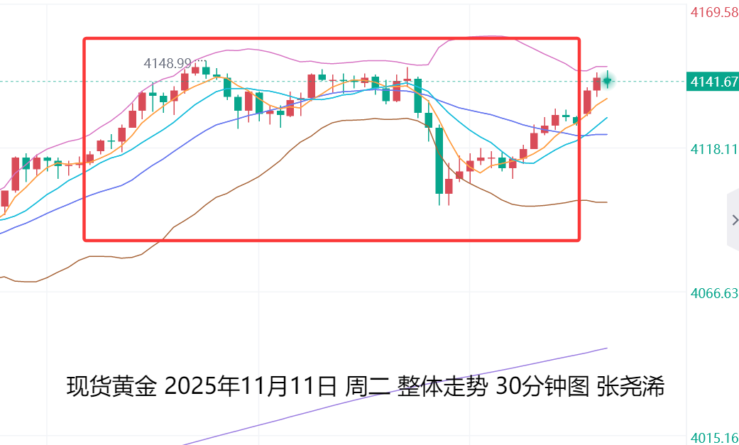 昨日黄金晚上没有冲上去,深夜大幅回踩,一度下破4100,不过随后凌晨以及今早又重新涨至4140附近,短期属于震荡行情,4148多次承压,此位压制较强,短期或继续震荡,所以日内围绕4148压制,可以继续再空一次,关注4143附近空,止损4153,止盈看4100附近支撑,注意风险。
