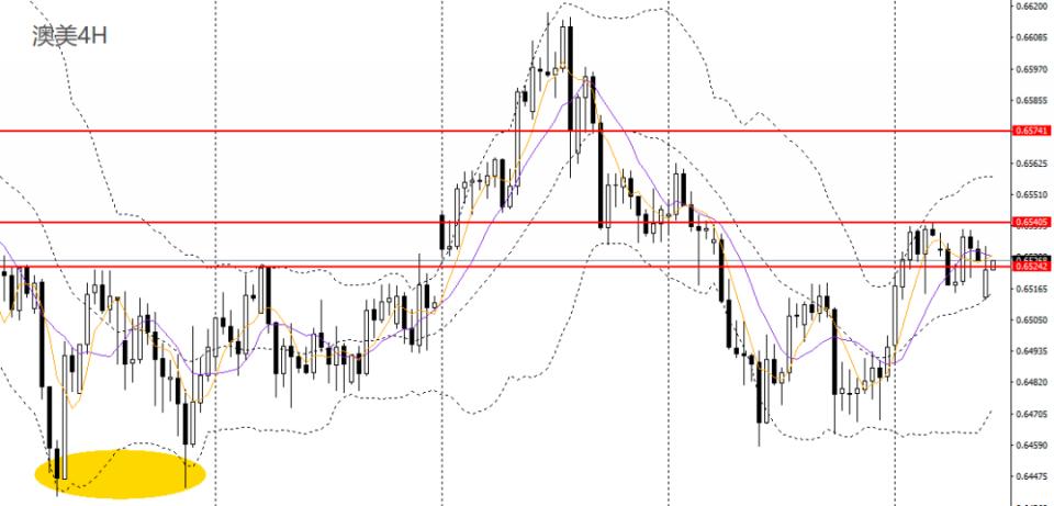澳美收十字阴线,4小时再度于0.6540附近承压,多头力量有限,0.65仍为下方关键支撑,如再度企稳可进多。