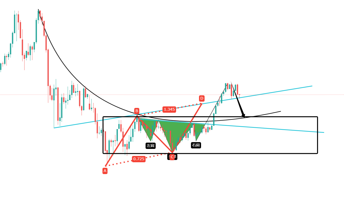 至于里面的结构拆解,昨天文章中说的很清楚,可以去自行查阅,这里就不做赘述了,最主要还是上方的蓝色趋势线,这根线的作用就是承接黄金继续上涨,如果,黄金接下来下跌破位这根趋势线的话,那基本可以宣告上涨结束,先不说会跌到哪,对于那些想看黄金大涨上去的人来说,这个希望基本可以落空了。