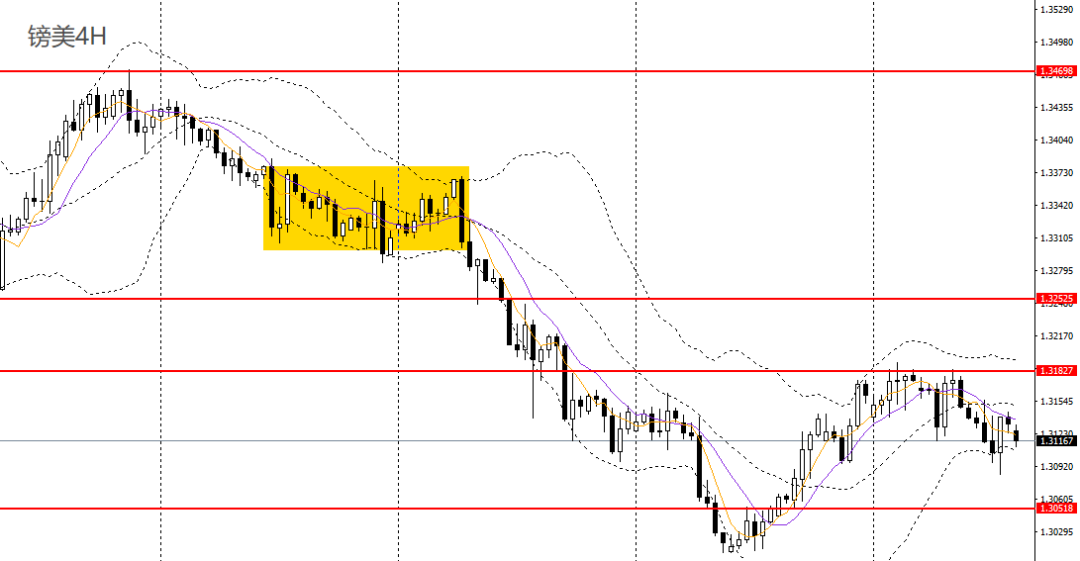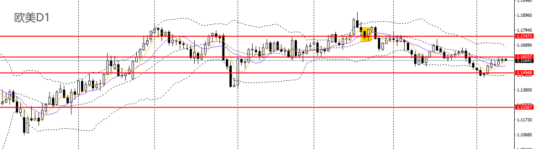 欧美昨日收小阳线,站上5日均线,日线RSI位于50左右,4小时逼近1.16关口,但未能正式升破,如继续承压于下方,多单可暂时离场。