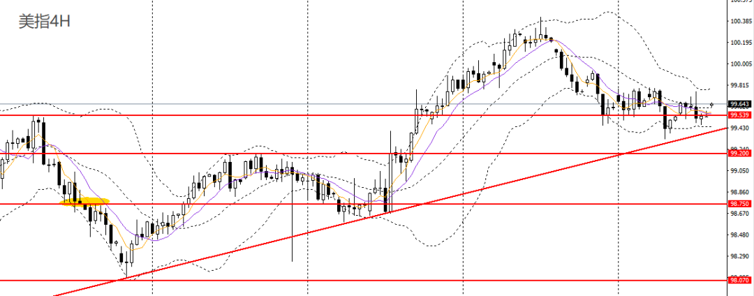 美元指数收小十字星,美盘后半段测试99.50一线支撑,短线趋势重新转弱,如彻底跌破99.50,后市有望下探99-99.20。