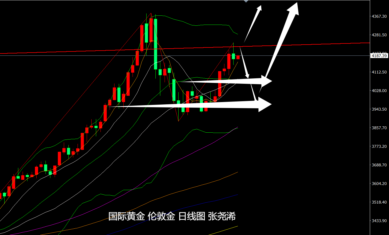 上交易日周四(11月13日):国际黄金遇阻给出的趋势线压力附近目标,以及美国结束史上最长停摆,诸多美联储官员再次释放偏鹰派信号产生利空,令其回落偏倒垂收跌,形态上也有一定的反弹见顶预期,暗示短期有回调至4090或4020美元附近的风险,但目前未跌破5日均线支撑,故此,暂先维持震荡或再度走强的预期对待。