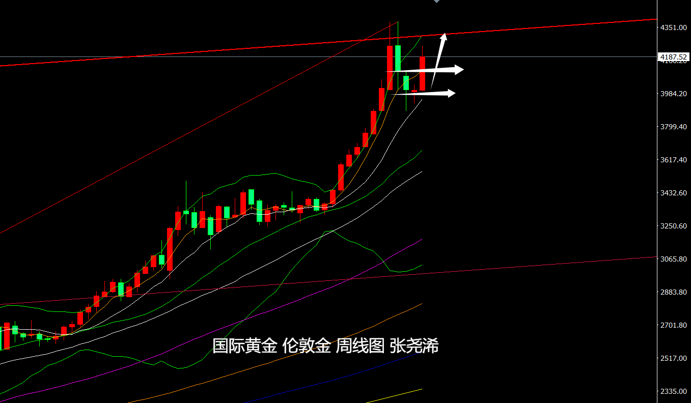技术上,周线级别,金价本周受到上周的止跌形态和均线支撑看涨买盘等推动,表现走强,虽然目前多头动力减缓,但仍运行在5-10周均线上方,布林带也向上延伸,暗示看涨前景良好,下方关注均线支撑,仍可看涨上行,等待再度触及4300美元或新高。