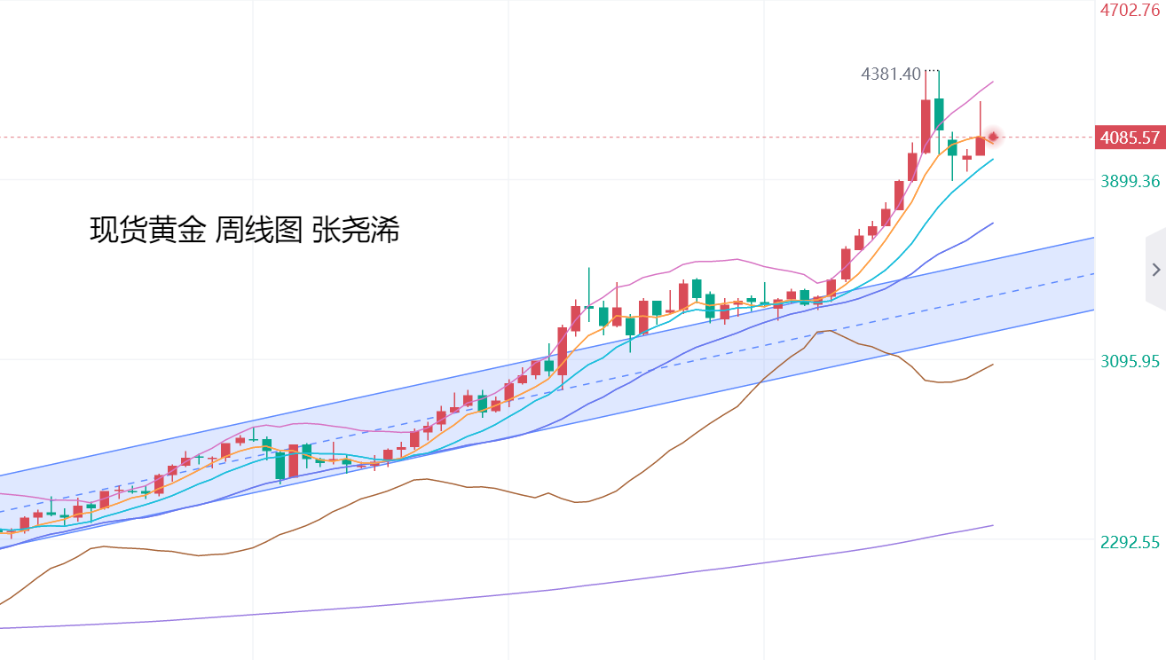 黄金市场上周:国际黄金冲高回落倒垂收涨,虽有一定的反弹见顶预期,但也仍运行在10周均线上方,以及布林带仍倾向上行,后市仍具看涨前景,但短期要么等待回落触及10周均线或中轨线附近支撑止跌看涨,要么等待重回4300美元上方收阳顺势跟进,在此之前震荡调整对待。