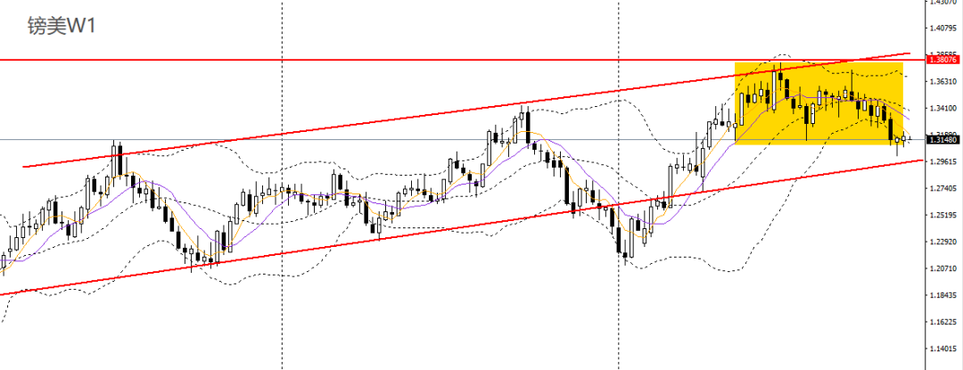 镑美上周再收十字阳线,承压于5周均线,RSI位于50之下,波段不排除将再度回踩上行通道下沿。周五收十字阴线,徘徊于5日、10日均线附近,日线RSI仍位于50之下,4小时反复上探1.3180-1.32压力带,短线仍趋于震荡,如无法有效升破,多单可暂时离场。