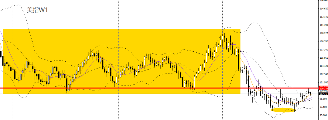 美元指数上周小幅收跌,回踩5周均线,波段仍处于震荡偏弱格局。周五收十字阳线,4小时守住99大关,如继续维稳于上方,可后市预计将上探99.50,99.70。