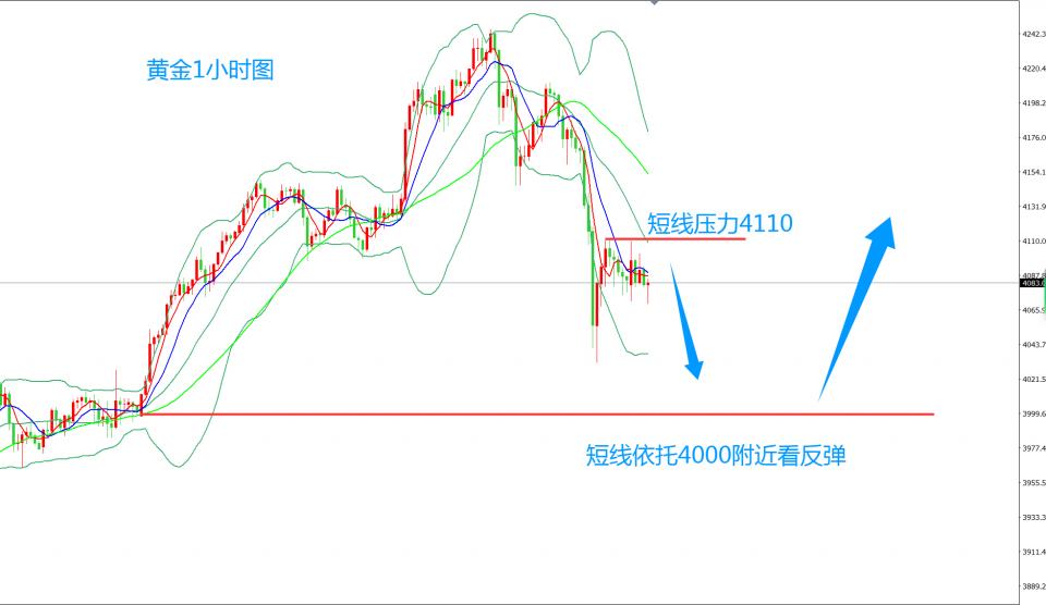 这张图你们应该熟悉,是我上周分析的主逻辑,反正先用一句话总结来说,那就是黄金已经见顶,接下来只要再能回归到4050之下,也就是之前底部震荡的空间内,黄金本周就有创造新低的可能性,而且这个概率在我看来很大,先不要盲目问我能跌倒哪,这问题现在没标准答案,我只关心眼前的问题,4030的破位。