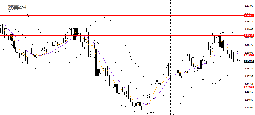 欧美昨日微幅收跌,下探10日均线,4小时下破1.16关口,有望呈头肩顶,空单可继续持有,后市预计将继续下探1.1580,1.1540。
