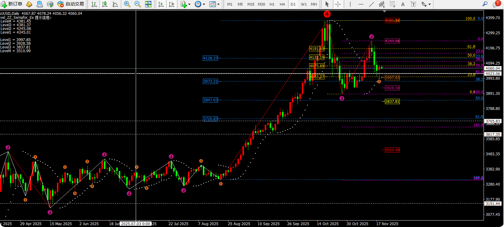 ①日线昨日运行到抛物转向点附近反弹拉升,而日线布林带目前三轨放平震荡区间在上下轨4198-3891附近。日线指标macd死叉缩量震荡,灵动指标sto快速向下到达超卖区域附近,代表日线还是震荡偏弱。