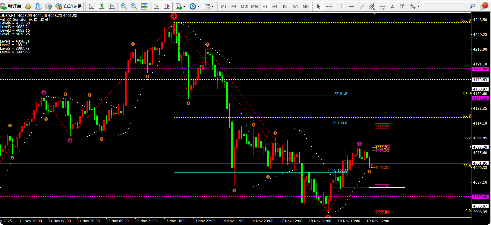 昨日开盘价格从4050-55附近开始震荡下跌至日内低点3997.8一线后反弹拉升,并且在4005-4008附近形成联排的底部支撑。价格从3998附近反弹4050一线回落震荡至4029附近进行二次拉升至日内高点4082附近,之后价格震荡回落至4040附近再次反弹拉升4082附近受阻回落4065附近并收盘。