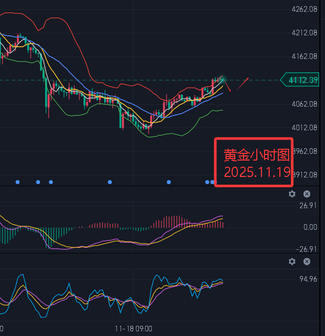 消息面:隔夜市场伦敦现货黄金表现较强,美公布劳动力市场高频数据,市场对于美联储降息预期有所调整,黄金再现震荡行情。美国截至10月18日当周首申失业金人数总计23.2万人,续请失业金人数录得195.7万人,较前一周的194.7万人略有上升。这是自10月初美政府停摆以来,外界首次得以窥见这一关键的劳动力市场高频指标,接下来关注11月20日9月非农就业报告公布。根据CME美联储观察,12月美降息概率调整至50.4%,相较前一交易日有所提升。另外,美国总统表示,他已经选定了下一任美联储主席的人选。昨晚美股先抑后扬,加之市场对美联储内部分歧加大的担忧,金价也出现先抑后扬走势,但市场对美流动性担忧仍然存在,金价短期难摆拖高位震荡甚至再度偏弱行情。建议投资朋友们在金价后市走势仍不明朗下谨慎进行。需关注明晚非农数据公布情况。
