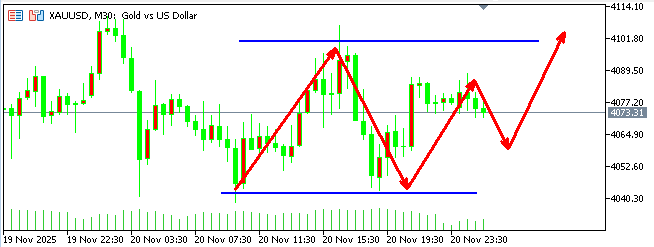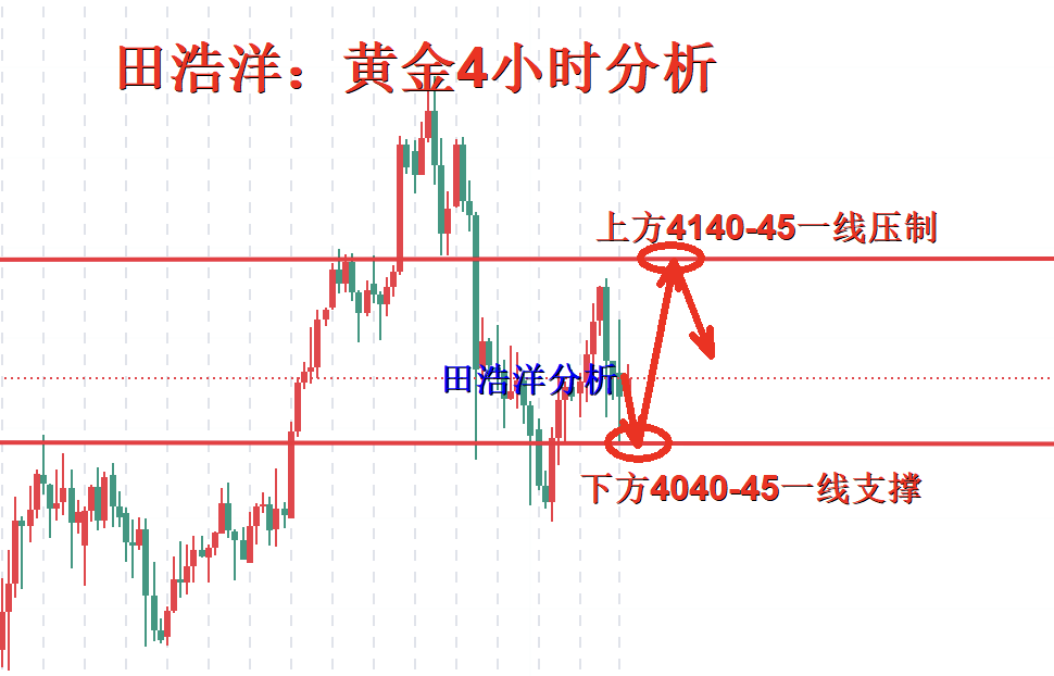 黄金早盘回踩4052附近多,防守4040,目标看4070/80上方,反抽初见4096附近空,防守4108,看4070/60区间
