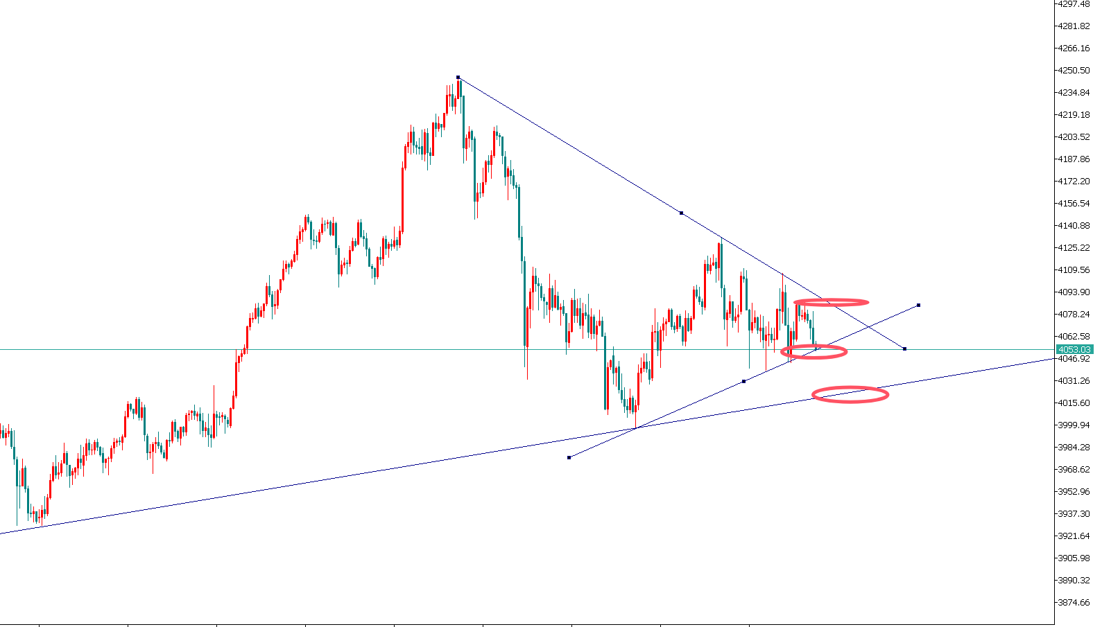 对于今天的行情来说,直接看图,目前黄金短线陷入收敛三角形整理,下沿支撑4050,上沿压力4090。如盘面跌破4050,那么回落进而继续关注4020附近,只有跌破4020才有望进一步打开下行空间。一旦突破4090则行情将继续走强!!!