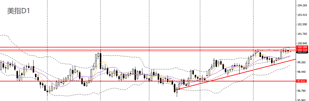 美元指数昨日再收十字星,回踩5日均线,4小时仍承压于100.30-100.50阻力带,如继续承压于下方,短线预计将下探100关口。