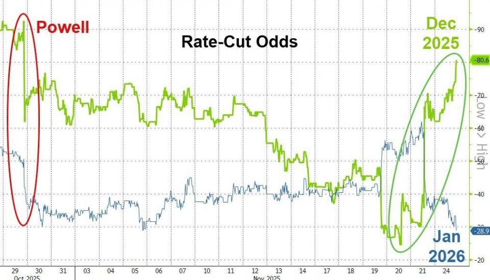 美联储12月降息预期彪升至80%。
