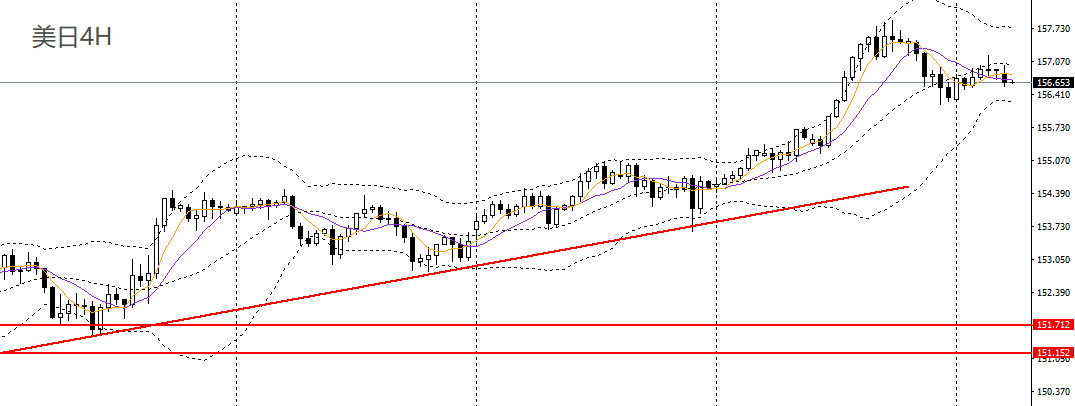 美日周一收涨,仍徘徊于5日均线附近,日线RSI延续回落,4小时未能触及158关口压力,后市震荡回落的概率较高,157附近承压可维持高空思路。