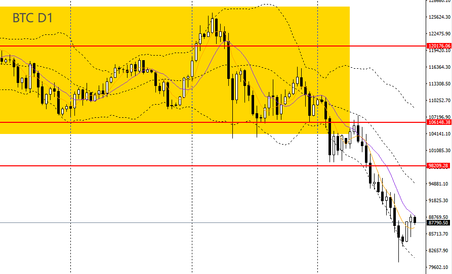 比特币周一探底回升,上探10日均线,日线RSI上扬,4小时上探88000-90000一带阻力,如继续承压于下方,多单仍建议离场。