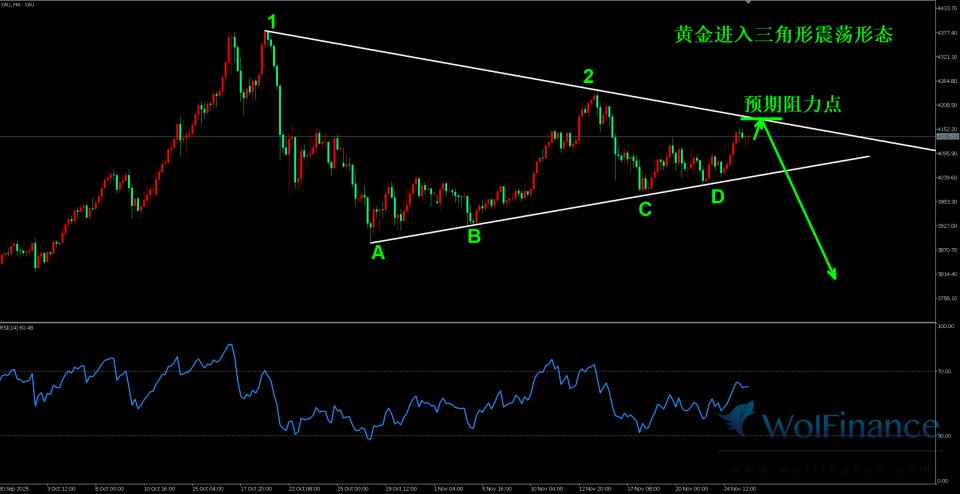 周二(11月25日)美盘初时段现货黄金继续震荡,大周期形成了三角形震荡修正行情,市场关注三角形上边线阻力点。阻力点空单逻辑,连续三天走出小幅探底回升走势,近期金价一直在4050附近震荡,星期二。近期,随着市场对美联储在12月降息预期明显升温,美元阶段性走弱,地缘局势在乌克兰及中东多点升温,避险情绪与利率预期在全球资产定价中的权重同步提升。作为重要避险资产与通胀对冲工具,现货黄金再度站上交易视野中央,现货黄金价格当前欧洲时段在每盎司4130美元附近震荡,处于年内相对高位区间。如何理解这一轮金价上行的内在逻辑,以及宏观与技术信号对后续走势所释放的含义,成为观察大宗商品市场时绕不开的核心问题。