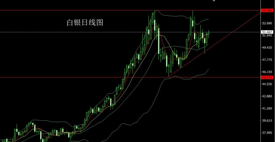 白银市场昨日开盘在51.284的位置后行情回踩50.97的位置后行情拉升,日线最高触及到了51.751的位置后行情快速回落,日线最低给到了50.656的位置后行情区间盘整,日线最终收线在了51.467的位置后,日线以一根下影线很长的锤头形态收线,而这样的形态收尾后,下方37.8的多和38.8的多跟进在42持有,昨日50.75的多减仓后止损跟进在50.7,今日下回落50.9多止损50.7目标看51.2和51.5和51.7,破位看52和52.3.