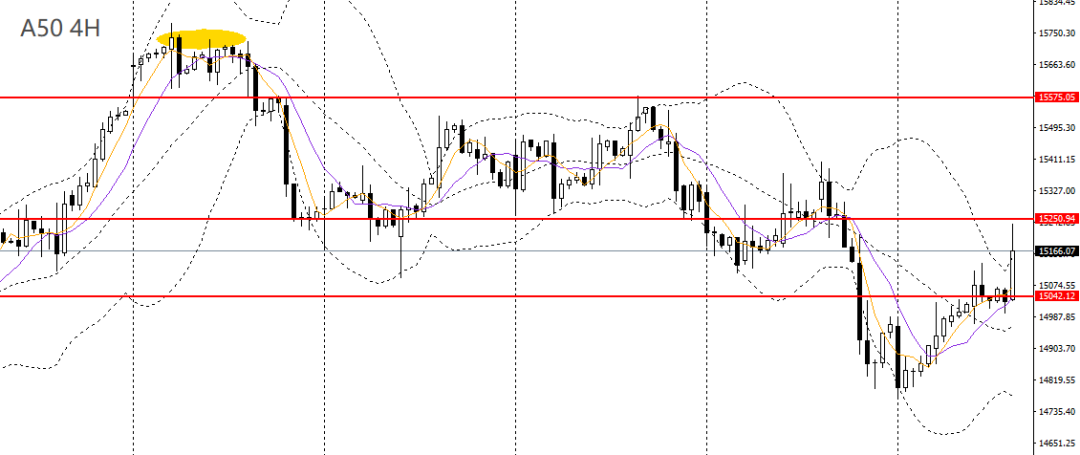 A50周四收十字星,今日亚盘受到美股提振而冲高,重新站上15000大关,且上探关键压力15200,短线趋势转强,多单仍可持有,如升破15200,可继续看多至15500。