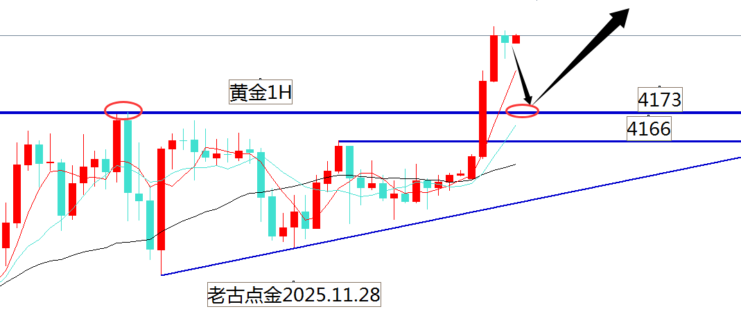 老古说了坚持思路的重要性,黄金不可能一直涨,也不可能一直跌,更多的时间是震荡,在震荡中需要确定是涨过程中的震荡还跌过程中的震荡,昨天的白盘的黄金就是涨过程中的震荡,这样的行情我们需要的找好震荡的低位置去布局多单,昨天我们布局的4150多到4190出爽歪歪,今天的思路还是继续看涨,因为感恩节市场波动不大昨天日线十字星,今天还是节假日时间,预估也是白天动作大晚上动作小,日线形态显示这波多头目标是4245的高点,如果可以站上和突破这个位置将会再次打开周线的上涨空间,今天日线需要回避4200的整数关口压制。