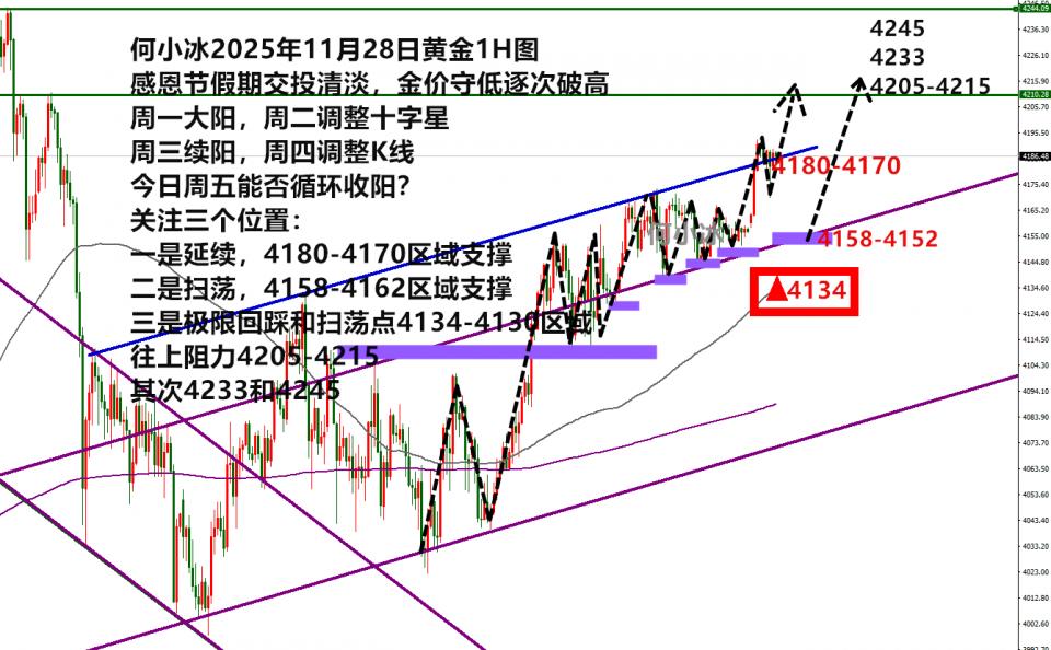 昨日周四由于感恩节假期影响,市场交投相对清淡,不过,继续保持本周的偏多上涨的基调,守低逐次向上破高