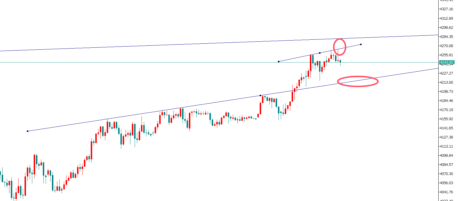 黄金市场,周一形成震荡上升,其中分为两步走!第一步:4245-4250的区间压制,回落乡向下寻求支撑;第二步:4220上下的支撑确认,震荡向上;第三步:4265附近的暂时高点压制,暂时回落向下运行!