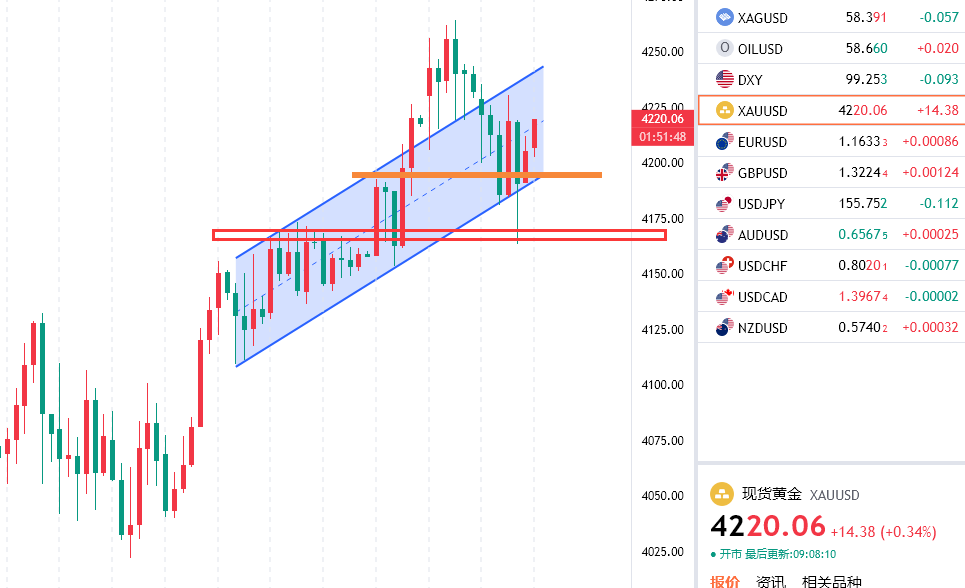 黄金回踩4202/03附近多,防守4190,目标4130附近,破位看4140上方,反抽初见4147附近空,防守4158,看4120附近
