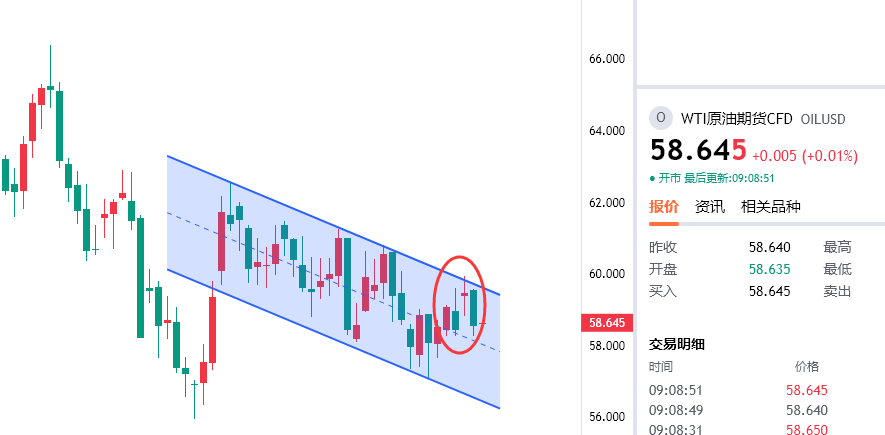 原油反弹59.2附近空,防守60,目标看57.8/57下方