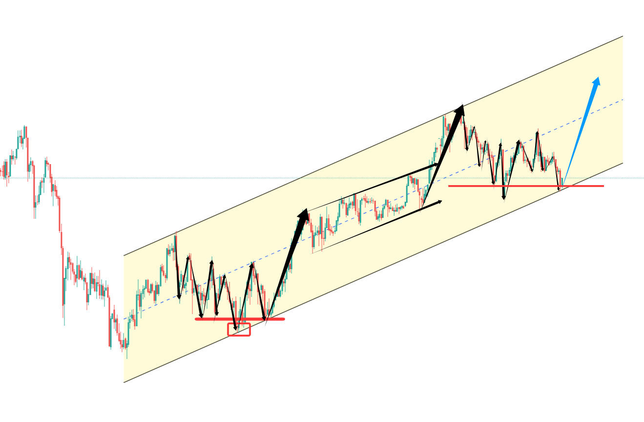 同样的波动轨迹,第一波下跌整理也是洗盘许久才爆发拉升的,而在这期间,它洗盘的水平低点是在4040,也是有效支撑价格,在这图中有过一次破位,那就是4022,从收复上去之后,再度回踩4040上去的,爆发了两段上涨,现在又是同样的下跌后洗盘戏码,而水平支撑来到了4180,就看这个4163能否兜住底了,只要能收复4180,就有上涨的可能性,而且还是大涨。