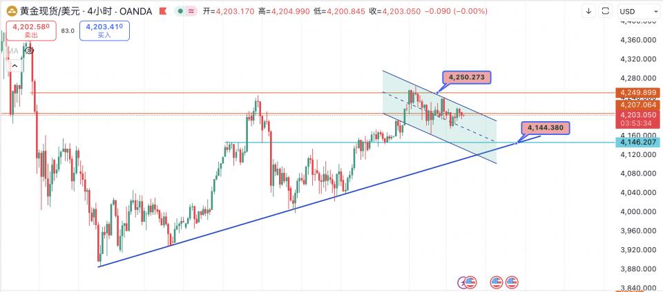 从日线上看,由周一和周三高点构筑的下行空间形成短期空头优势,下方的20日MA位于4144,4小时级别的60均线支撑在4170,结合我们昨天判断的4156,这样下方三个支撑点(低多介入位)就呼之欲出了,即4170、4156、4144。上方压力位则继续参考4240、4260和4291。