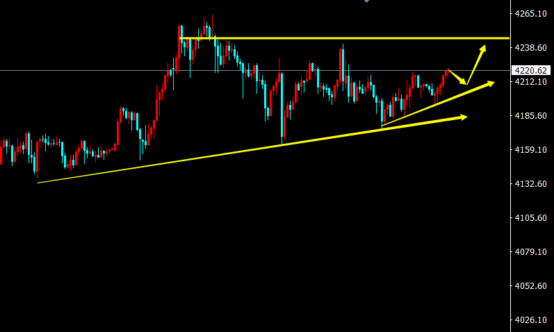 现在欧盘开市,金价于4230阻力位回踩,从上午9点开始的震荡上行也终于开始修正,鉴于今晚有重要的美国经济数据(图1),市场在数据公布前保持谨慎是正常的。