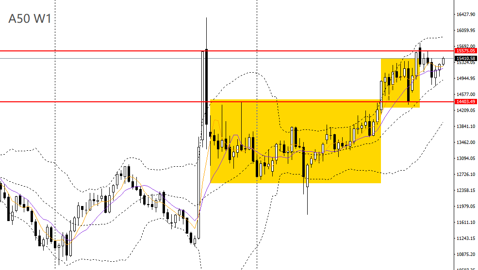 A50上周延续反弹,站上5周均线,波段有望上探前高16300。周五大幅收涨,今日亚盘延续上行,立于日线布林中轨之上,4小时上破15200一线阻力,上行空间打开,多单仍可持有,后市大概率将继续挑战15500。