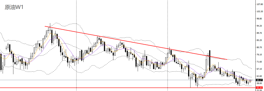 美原油上周延续回升,上探10周均线,波段趋势震荡偏弱。日线呈前进三兵,站上5日均线,4小时升破60一线阻力,多单仍可持有,后市可继续看多至61。