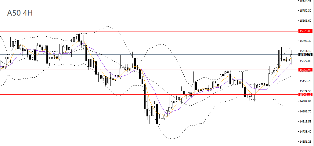 A50昨日冲高回落,仍立于5日均线上方,4小时守住15200一线支撑,短线趋势仍强劲,多单仍可持有,后市大概率将继续挑战15500。
