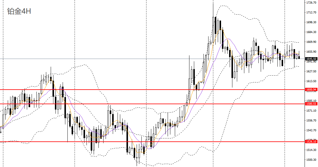 铂金收十字阳线,日线RSI回落,4小时反复回踩1630附近支撑,短线走势仍不明朗,建议暂时观望。