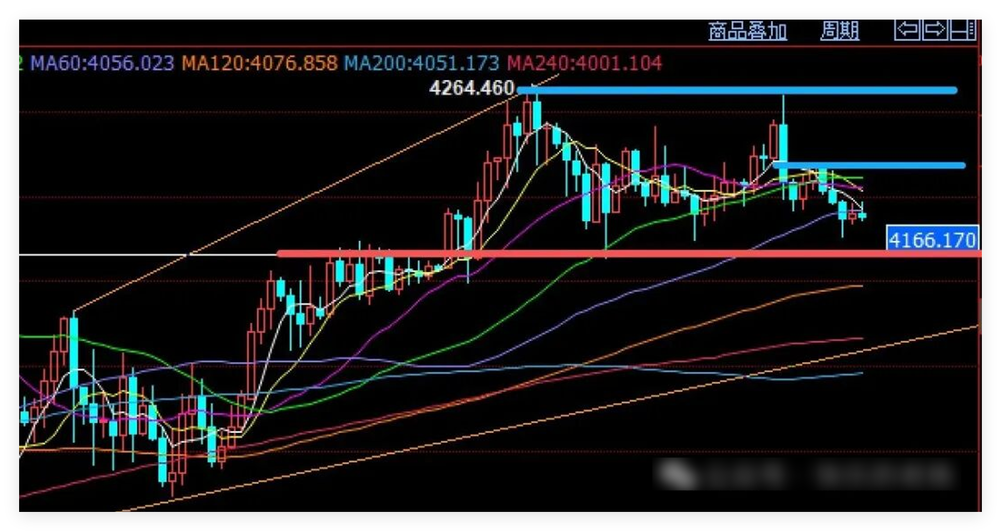 今日的话短期多空分界4200-05区域,以下偏弱运行;要开启空头必须下破4170-65区域,否则随时还要拉高。下破4170-65则必定测试3886以来趋势支撑,这里才是多空双方最关键的地方。