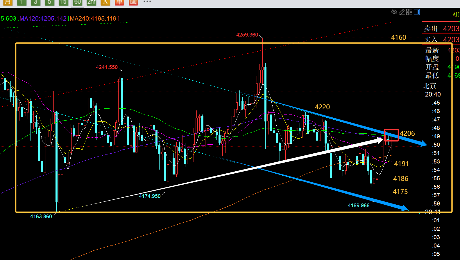 操作建议:先涨4230上方找机会空,先跌接近日内低点或4200多。(数据前有效)昨天实盘给出4170多,4190多,4205-10空。