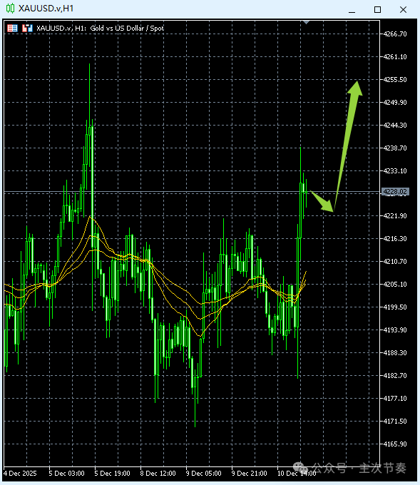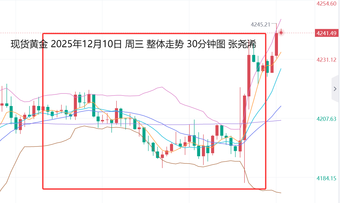国际黄金周三(12月10日)触底反弹强势收涨,开盘价4212.57美元/盎司,最高价4221.34美元/盎司,,最低价4187.71美元/盎司,收盘价4193.68美元/盎司。