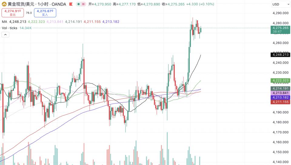 图表方面,1小时级别的MACD、KDJ与RSI走势背驰,超买信号可能令亚盘多头买家停步,我们操作上建议在下方4260附近参与低多,目标位看到4275即可。