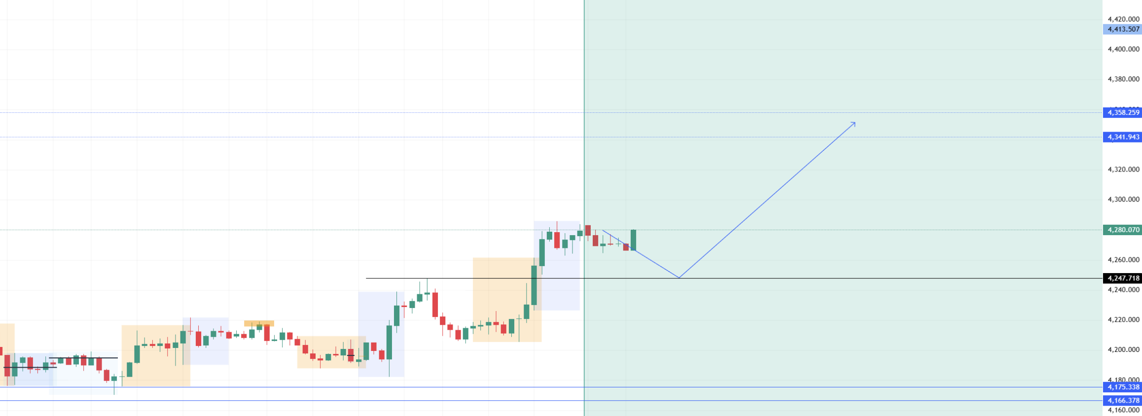 黄金早间小幅回撤于4264附近后继续反弹,多头就是这么强势,今天我们给了回踩4240-45一线做多的策略,但是没有到达就直接反弹了,足以说明多头强势,今天也是周线收官,我们更加要注意午夜防止黑天鹅出现,技术面我们继续以回踩做多为主,技术面各个指标都是利多的,而且小时线均线向上发散,上方我们关注上月高点4380-85一线压制。周五我们尽量谨慎操作为主。如果你目前操作不理想,希望田浩洋能让你的投资少走弯路,欢迎前来沟通交流!