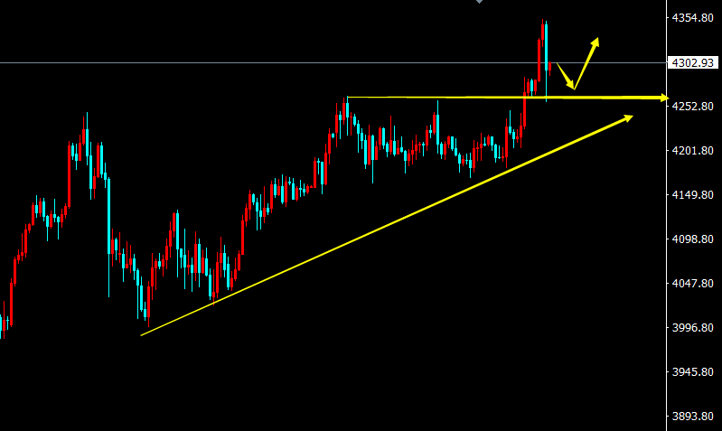 【周一操作】:黄金周一先回撤于4280-77附近做多,目标看4305-4330附近,损4265.