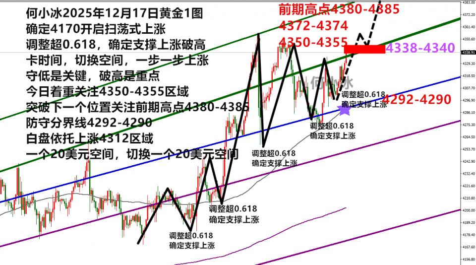 大跌找4270区域的支撑,反复测试徘徊,美盘直接低位拉升上涨超60美元,最高触及4335,然后才冲高回落
