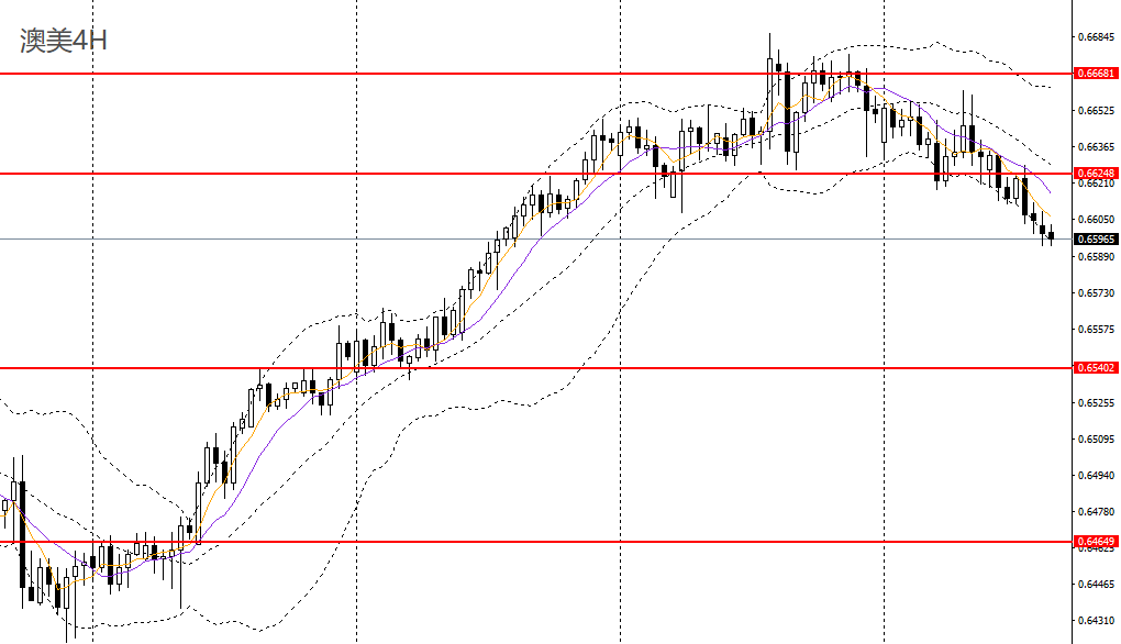 澳美沿5日均线阴跌,日线RSI跌至50附近,4小时头肩顶确立,且刺破0.66关口,空单仍可持有,短线预计将回踩0.6570一线。