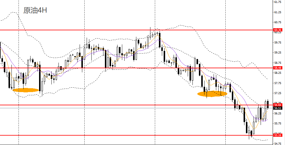美原油日线呈平头底部,日线RSI回升,4小时上破56.60一线阻力,多头占据优势,短线空单建议离场,稳健者可保持观望。