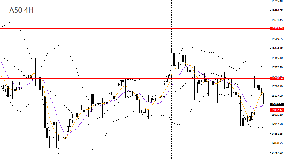 A50收复周二跌幅,徘徊于5日、10日均线附近,4小时触及15200一线关键压力,如无法升破,多单建议离场,短线仍趋于震荡,稳健者可继续观望。