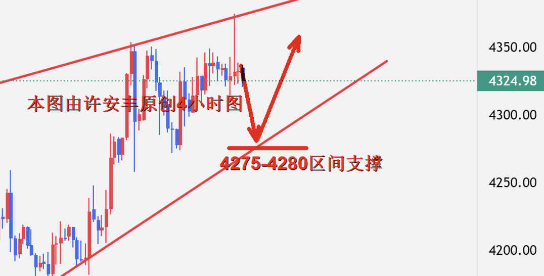 黄金1小时均线已经开始继续金叉向上的多头排列发散,黄金1小时直接突破了近期的高点,反复试探之后,黄金多头直接发力向上突破,那么黄金多头向上的量能打开,黄金4350短线已经形成支撑,黄金美盘回踩4350上就是继续给逢低多的机会。