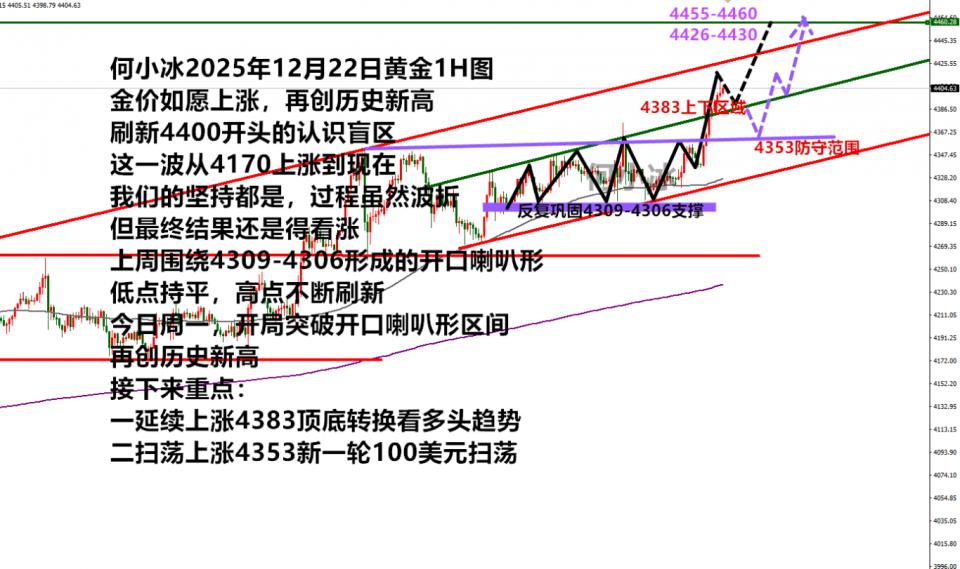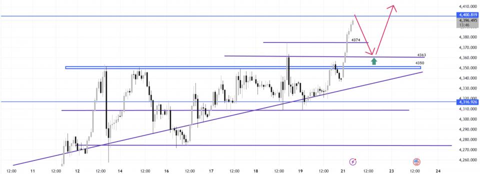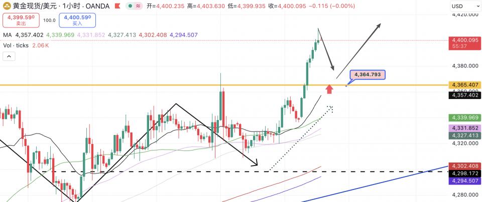 黄金日内白盘则是守住突破的高点并冲刺了4400以上,黄金多头相当强势,在方向上有所倾向的前提下对于短线操作就是继续保持主低多跟随即可,只是当下需要考虑的问题是上涨节奏问题,前面的攀升都是以扫荡式上涨,而当前盘面的问题是前面反复向上突破,是否会进入加速阶段,我们需要关注回撤的空间和下方支撑情况,整个趋势依旧处于上行通道中,大家不要盲目跟随市场上的策略追单,稳健等待回落调整再做多安排!