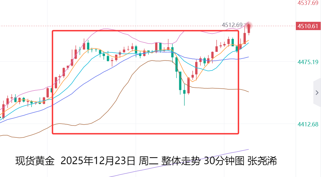 上交易日周二(12月23日):国际黄金继续持稳反弹收阳,虽中途一度回撤转跌,但最终触底回升再度走强,多头仍占据优势,并也暗示后市将会进一步延续走强的概率较大。操作继续以低多看涨为主。